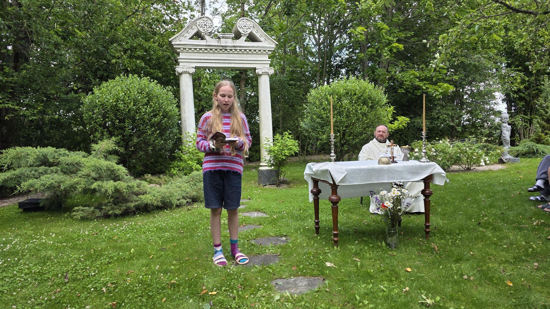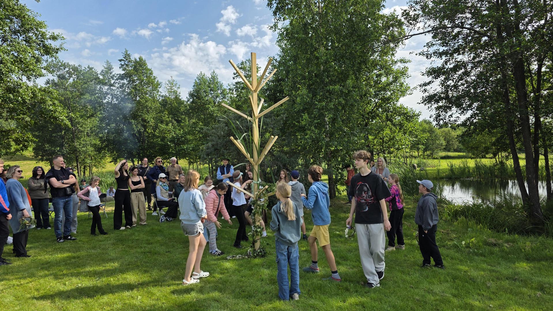 Pasiruošimas rasų šventei – vartų statymas ir puošimas gėlėmis, juostomis ir simboliais.