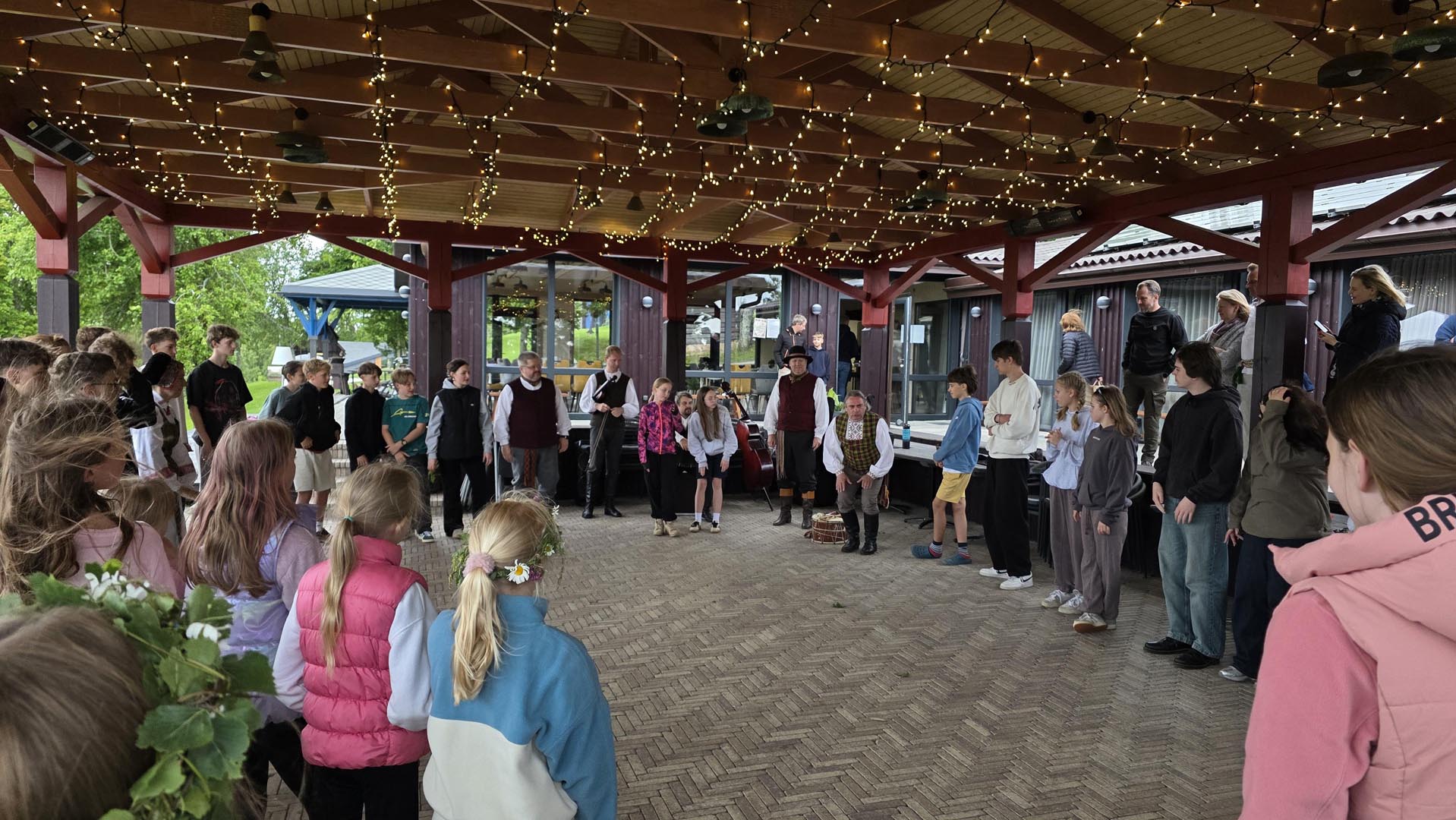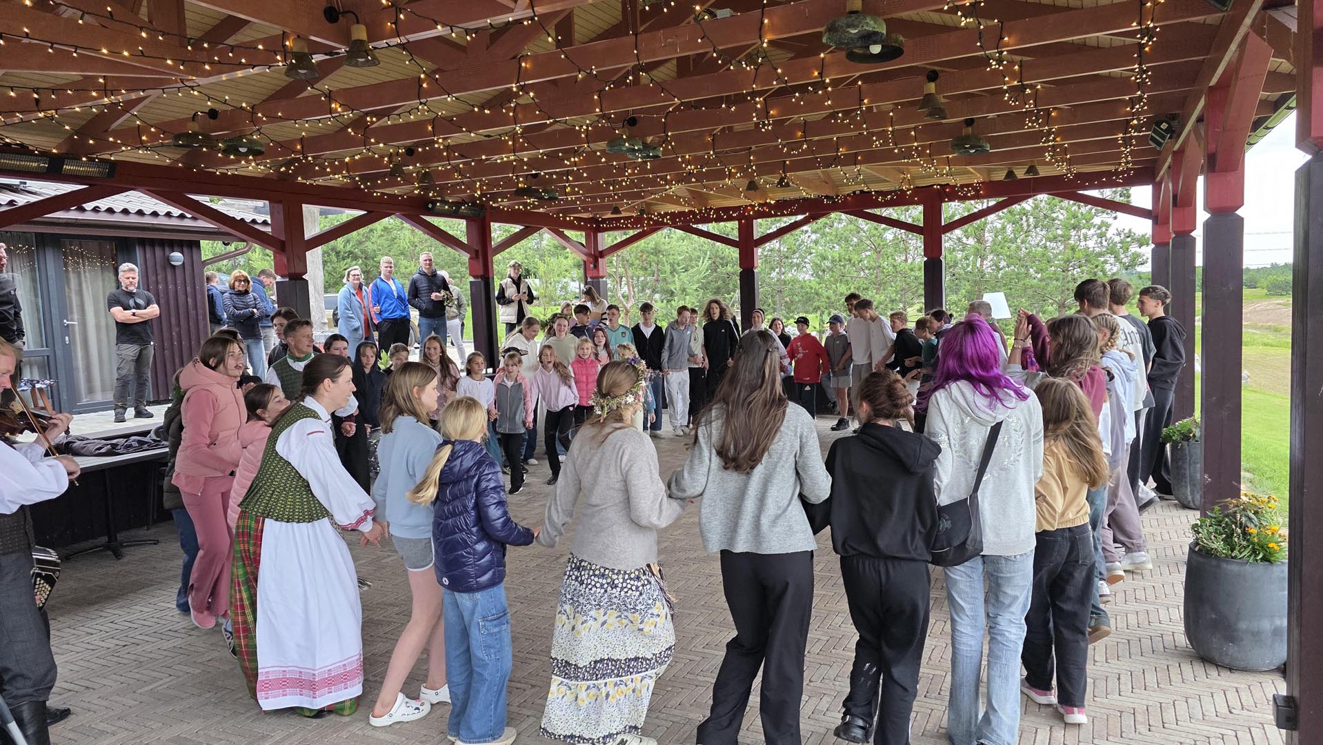 Šokiai ir dainos su folkloro grupe.