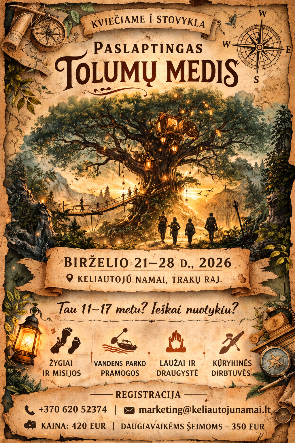 Stovyklos „Paslaptingas Tolumų medis”. Išlikimo mokykla” vaikų registracija yra būtina , nes ji padeda surengti ir tvarkyti reikiamus duomenis apie dalyvius, taip pat leidžia organizatoriams efektyviai planuoti ir valdyti stovyklos veiklą.